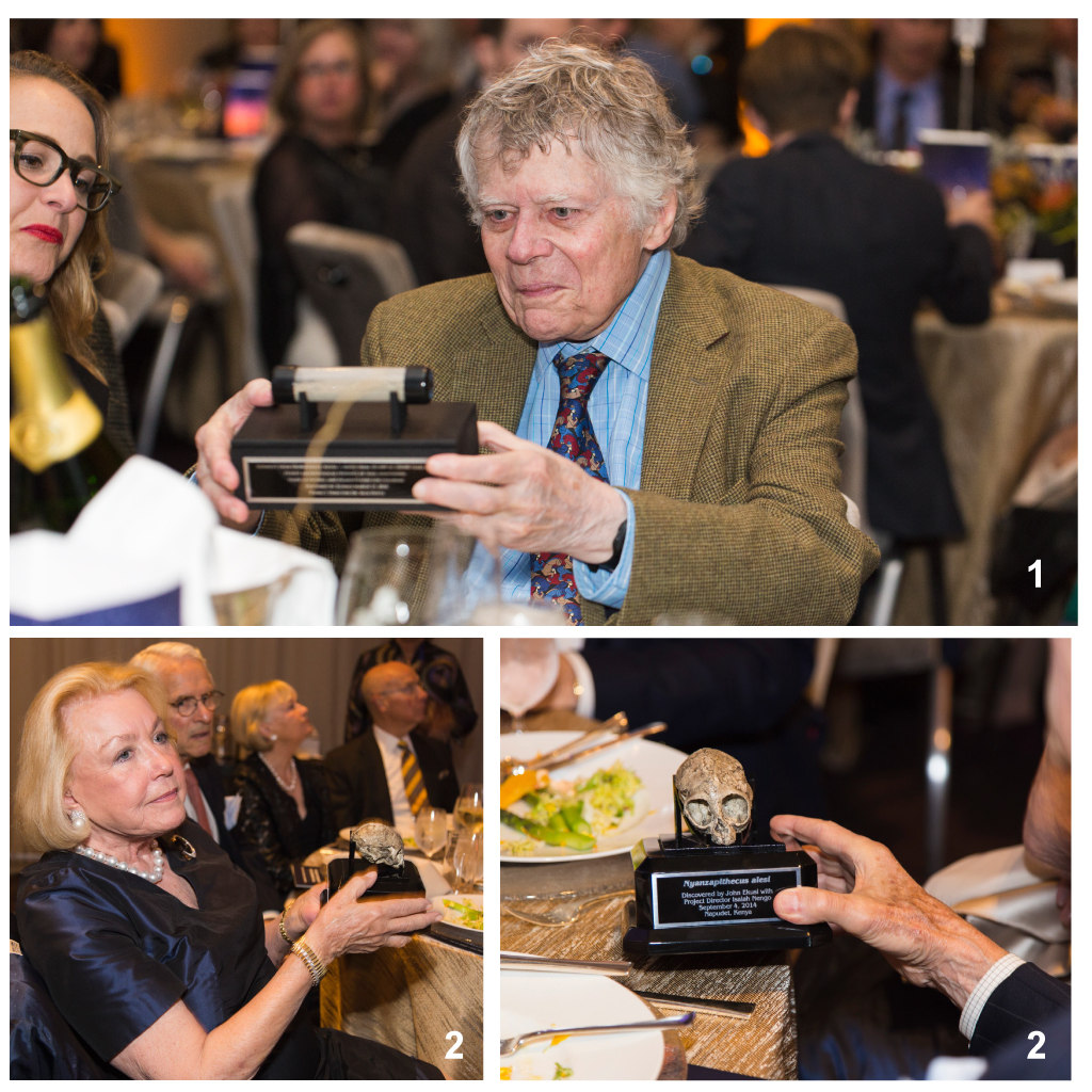 The celebration featured a cocktail reception with a portrait studio, and the dinner party began with a performance of South African music by Chinyakare Ensemble. Dr. Kelly Stewart served as our master of ceremonies and introduced speeches Leakey Foundation President Camilla Smith, Executive Director Sharal Camisa, and Scientific Executive Committee Member Nina Jablonski. Our keynote speech was delivered by the Director of the Smithsonian’s Natural History Museum, Kirk Johnson.