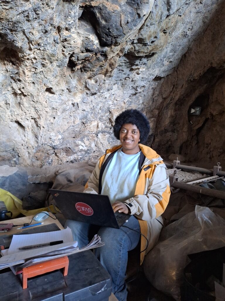 At NYU, Asithandile is conducting doctoral research that combines anthracology, paleoecology, and archaeology to explore how ancient human groups influenced fire regimes in the Greater Cape Floristic Region. Her project involves analyzing archaeological charcoal from Boomplaas Cave and off-site fire records from hyrax middens in the Swartberg Mountains to test hypotheses about human use of fire as a landscape management tool. This interdisciplinary approach aims to challenge long-standing narratives that early hunter-gatherers were passive recipients of environmental change.