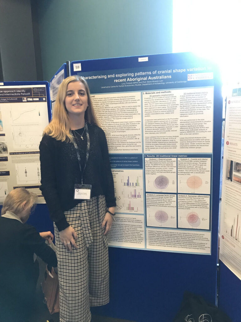 As an EvoAnth undergraduate, I learnt about all aspects of hominin evolution and I became familiarised with new concepts, theories and ideas that were all pretty alien to me before. I quickly developed an interest in the more recent phases of human time – the evolution of our own species and the processes that shaped our biological and cultural diversity today. For my thesis, I decided that I wanted to look at modern human morphological diversity in some capacity, as I had enjoyed human osteology classes the most out of all of the modules I had taken, so I contacted my advisor, Dr Kimberly Plomp, who helped me put together a project. I investigated whether a small part of the human skull (specifically the basicranial portion of the temporal bone) could be used to differentiate between two British populations using geometric morphometrics, a suite of complex shape analysis techniques, which Kim taught me. Going into my MPhil at the University of Cambridge, I expanded my experience and understanding of this technique, as well as used more traditional metric analyses, to look at how morphological variability in Aboriginal Australian populations relates to hypotheses about the demographic history of the continent.