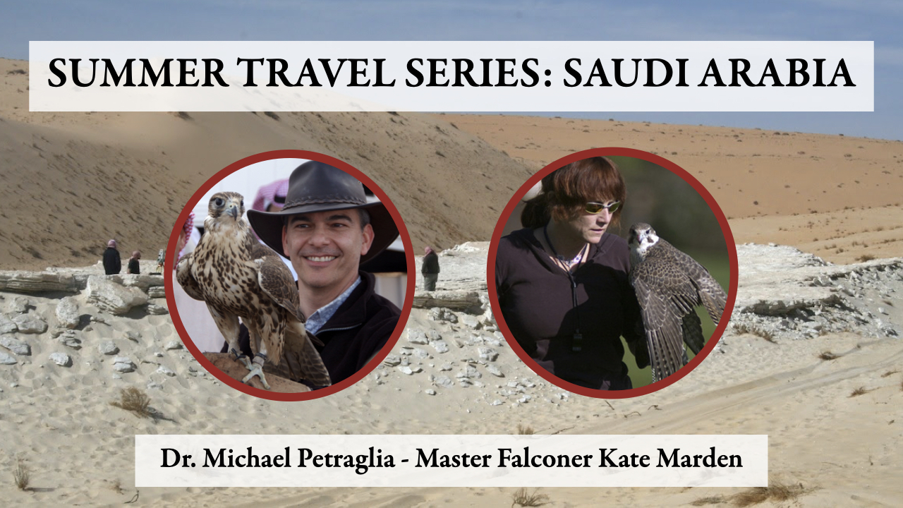 Explore fascinating archaeological and primate research sites with Leakey Foundation scientists as your guides while supporting a good cause! This event in the “Summer Travel Series” takes you to Saudi Arabia for a behind-the-scenes virtual tour of the earliest known Arabian archaeological sites with Leakey Foundation grantee Dr. Michael Petraglia and features a presentation by master falconer Kate Marden who will provide a glimpse inside the ancient hunting tradition of falconry in Saudi Arabia.