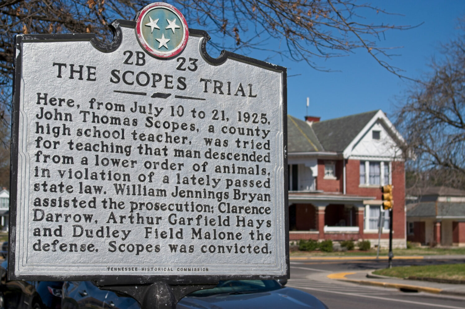 Dayton did benefit from the notoriety of the Scopes trial, thanks to sustained cultural tourism. Proud of its unique history, the town today boasts a historical marker to alert passersby to the significance of the landmark event that took place in the Rhea County Courthouse. And in 2025, Dayton has been hosting a series of events to commemorate the trial’s centennial.